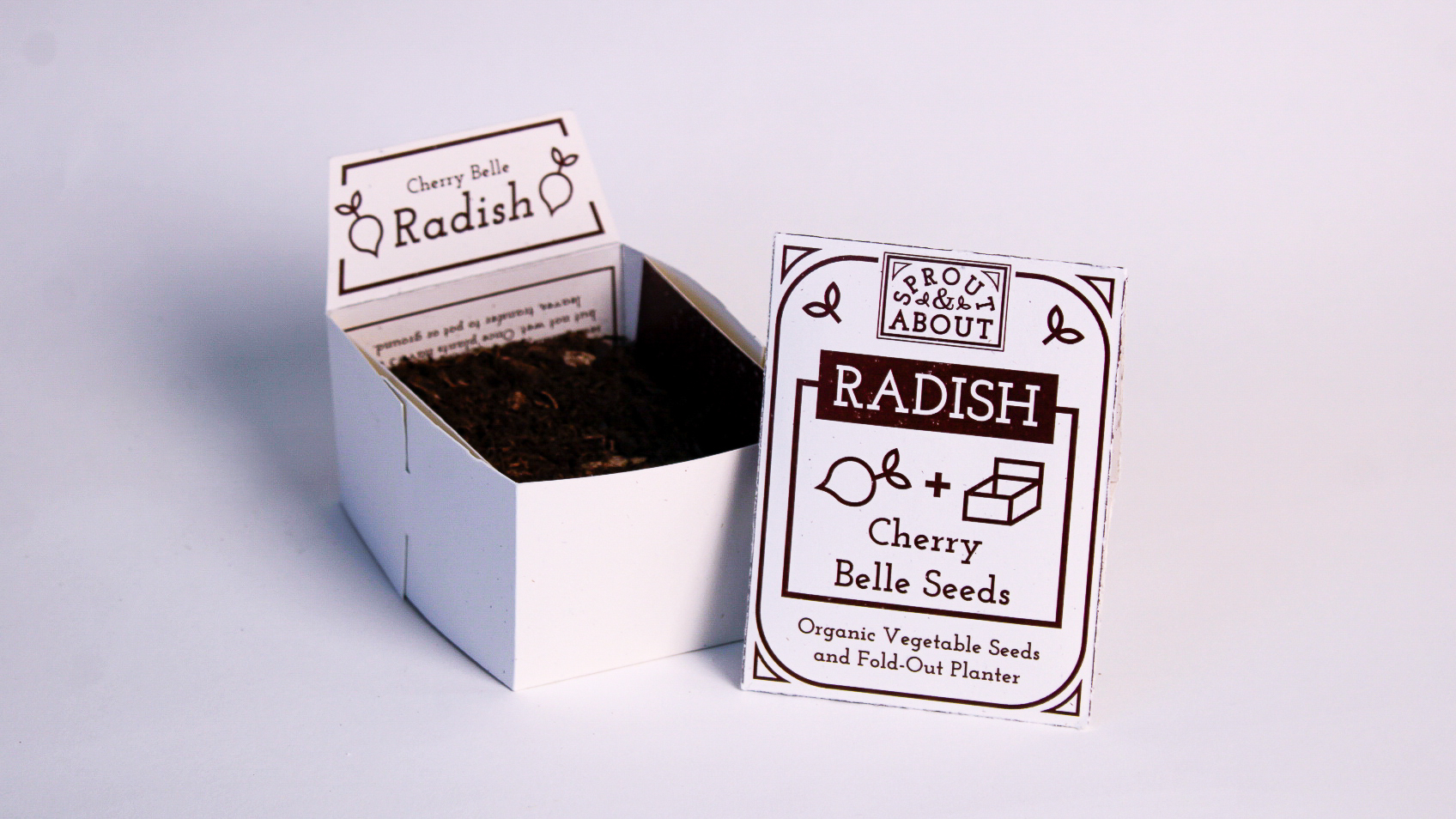 Sprout and About needed a sustainable packaging design to incorporate their core values of providing quality seeds in a sustainable and biodegradable package that also doubled as a germination planting pot.
